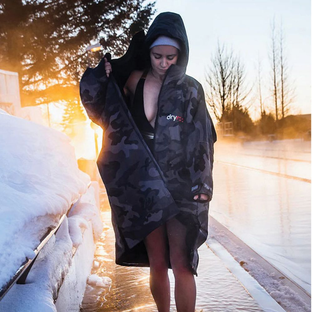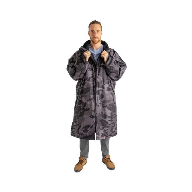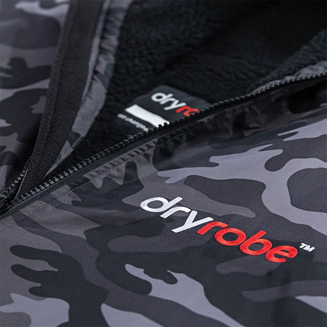 Long Sleeved Dryrobe in Black Camo Black. The Dryrobe® Advance long sleeve is the original waterproof changing robe, designed to stand up to wild weather and days spent outdoors.