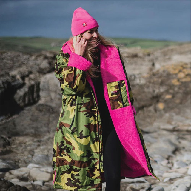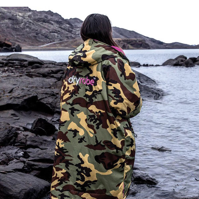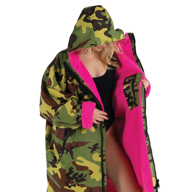 Long Sleeved Dryrobe in Camouflage Pink. The Dryrobe® Advance long sleeve is the original waterproof changing robe, designed to stand up to wild weather and days spent outdoors.
